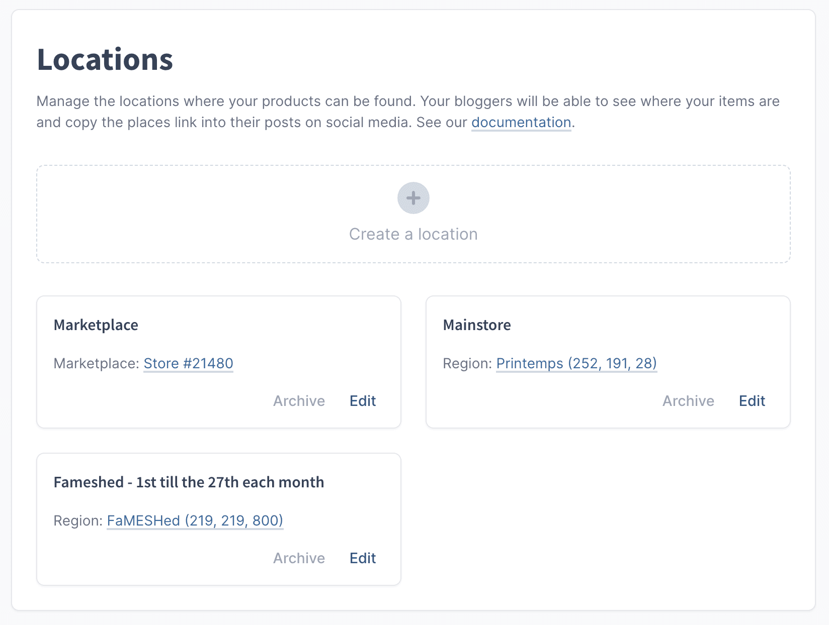 Creators and managers can now create Locations for their Products. Going into the Settings, and clicking on Locations, a new page will appear letting you the ability to manage your Locations.