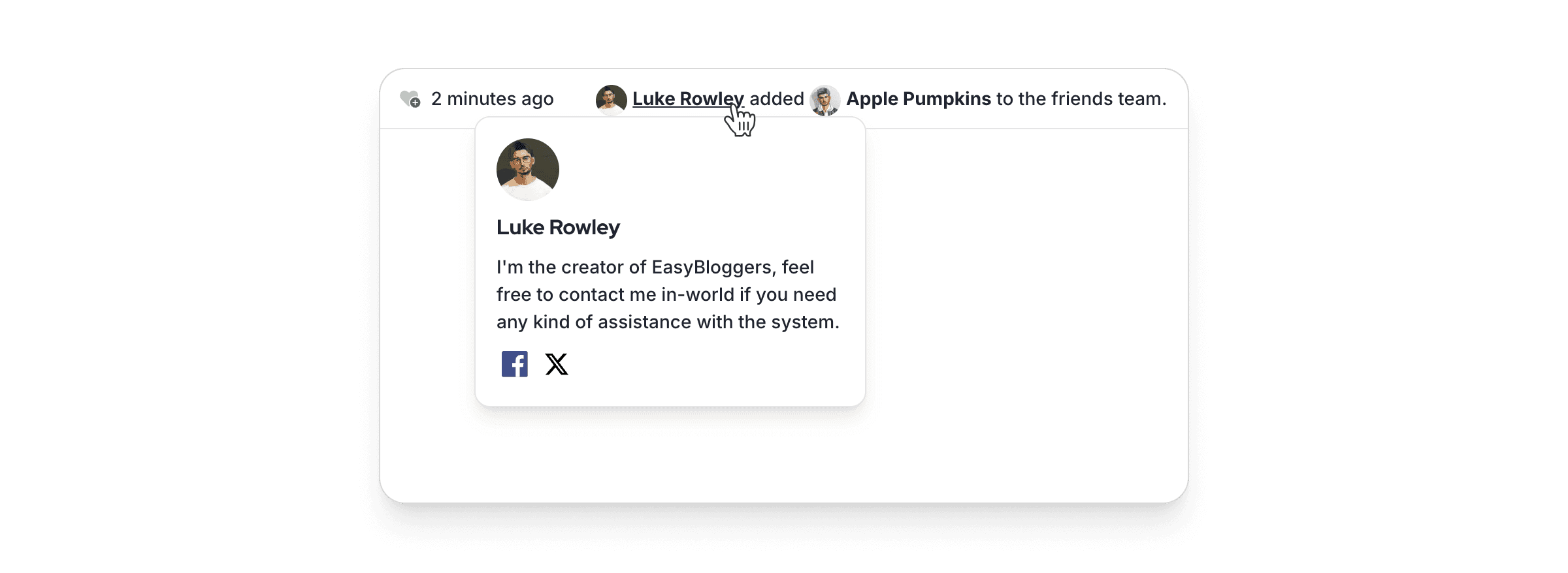 Accessible from anywhere on the app, anytime you hover a username with your mouse, a profile card containing the information about the user will be displayed. This is especially handy when you want to quickly check the social links of a user. And there is more!